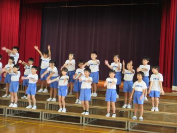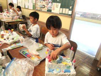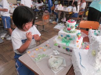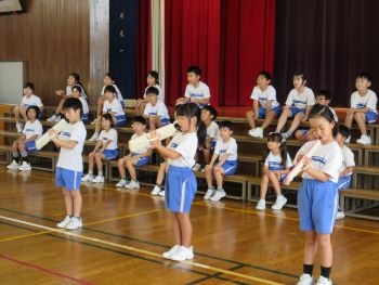2025.9.22 1年生 2年生 今日の万葉っ子9/19 9月19日(金) 2年生が体育館で学習発表会の練習をしました。自分の場所を確認したり、演奏の練習をしたりして、集中して練習に取り組んでいました。 1年生は、図画工作科の時間にケーキが仕上がるように作業しました。「私のケーキを見て!」と自分の満足のいく作品になったようでした。