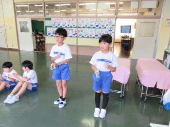 ワークスペースから元気な歌声が聞こえてきました。2年生が学習発表会の練習をしていました。スムーズに動くことができるように、場所移動やタイミングの確認をしていました。