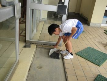 掃除の時間には、「おうちの方に気持ちよく過ごしてもらいたい」という思いを込めて、学校の隅々まで掃除をしました。