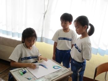 「長く引っ張れたよ!」「きれいな色になった!」と、夢中になって作業を進めていました。友達の作品を見て「私もその色をつくってみたい!」と刺激を受け、楽しんで活動していました。