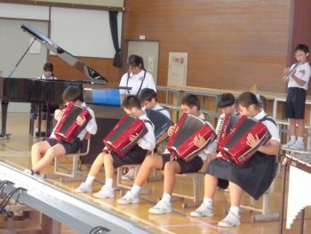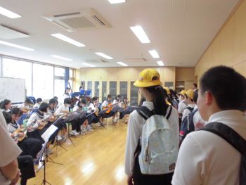 5年生は、成美小学校へ出かけ、音楽交流会を行いました。