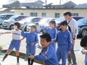 まだ少し恥ずかしさもあり、大きな声での挨拶はこれからの課題ですが、一人ひとりが「おはよう」と声をかけようと頑張りました。明日は、2年生と5年生が活動を行う予定です。