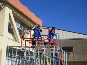 「高いところから光を当てるとどうなるんだろう?」「草の上に反射させたら、光の色は変わるのかな?」と、それぞれが感じた疑問を、解決しようと実験を進めていました。
