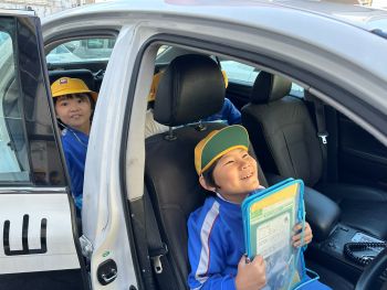 高岡警察署では、警察の仕事内容を教わり、パトカーの見学をしました。実際のパトカーに乗ることができ子供たちは、笑顔でいっぱいでした。