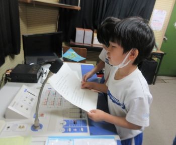 校内放送にも挑戦。1年生が収穫したサツマイモについて紹介しました。