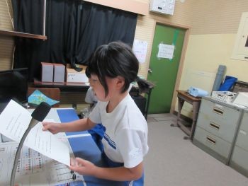 校内放送にも挑戦。1年生が収穫したサツマイモについて紹介しました。