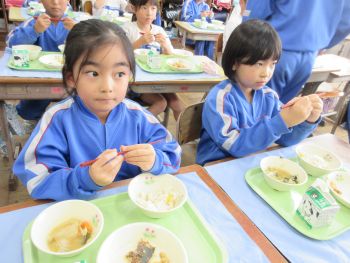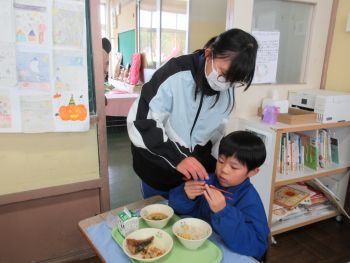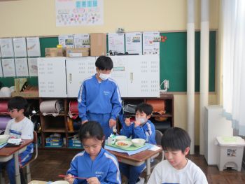 2025.11.14 2年生 5年生 6年生 今日の万葉っ子 11/13 11月13日(木) 給食委員会が、給食の時間に2年生を対象として、箸の持ち方のコツを教えました。 2年生は、5年生の説明をしっかり聞きながら、実際に箸を持って練習しました。 周りでは、6年生が正しくできているか確認し、優しくサポートしてくれました。 最後には、みんな箸の持ち方に気を付けながら、おいしく給食をいただきました。