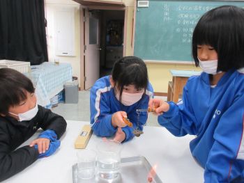4年生は理科の時間に、金属の体積が温度によってどのように変化するかを調べる実験を行いました。昨日学習したアルコールランプの使い方はバッチリ。温めた後の金属は体積が大きくなり、子供たちはその結果にとても驚いていました。