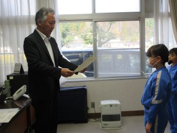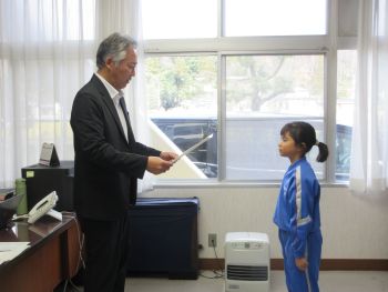 富山県造形教育作品展に出品した児童に、校長先生から賞状が授与されました。