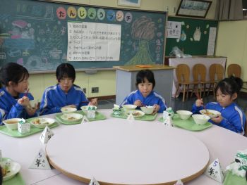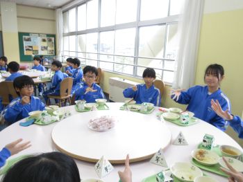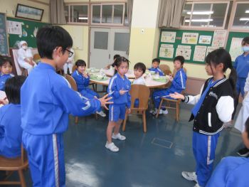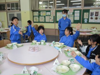 今日は、延期になっていた11月・12月生まれの誕生ランチの日でした。給食委員会の子供たちも、すっかり慣れた様子で会食を進行。お楽しみのじゃんけん大会では、1年生が今日のラッキーさんに!