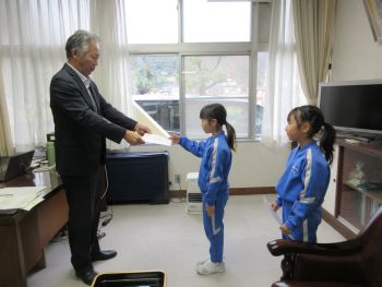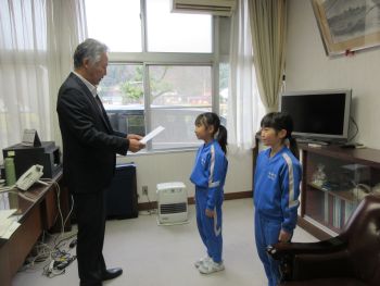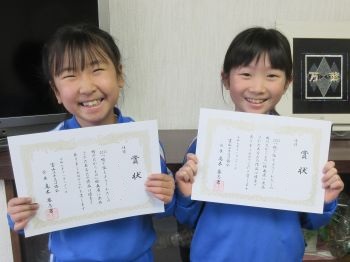 2025.12.17 授賞式 12/17 「2025絵で伝えよう!私の町のたからもの」絵画展に出品し佳作を受賞した児童に、校長先生から賞状が渡されました。 二人とも絵を描くことが好きだそうです。これからも好きなことに挑戦してくださいね。