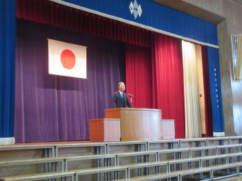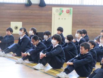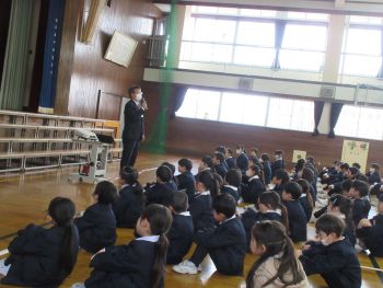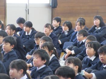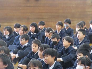 その後、冬休みの過ごし方についてのお話がありました。雪や火の取り扱い、交通安全、不審者への注意等について、子供たちはしっかりと耳を傾けていました。