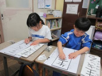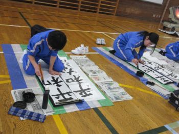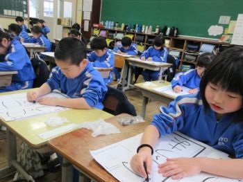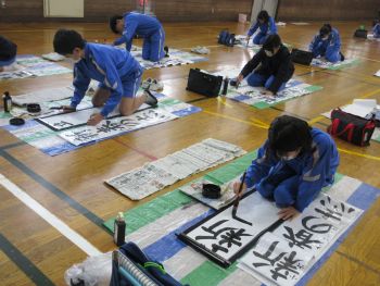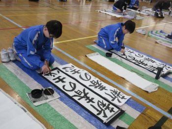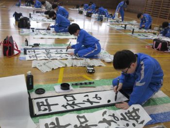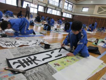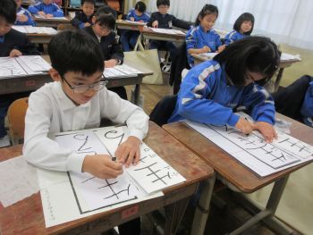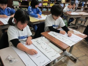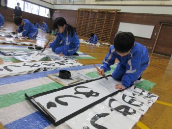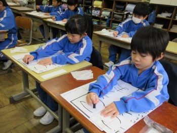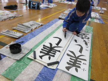 校内書初大会を行いました。 会場には、静かな緊張感が広がり、子供たちはこれまでの練習の成果を発揮しようと、一画一画に心を込めて筆を進めました。真剣なまなざしから、「うまく書けますように」という願いが感じ取れました。