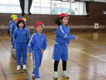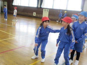体育館から、元気いっぱいの声が響いていました。のぞいてみると、2年生が楽しそうに長縄跳びの練習をしていました。「惜しいよ」「がんばれ」と声をかけ合いながら、みんなで力を合わせて上達を目指していました。