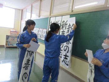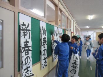 校内では「初めて金賞が取れてうれしい」「私は銀賞だった」等、あちらこちらで書初大会の結果についての会話が聞こえてきました。6年生は、2学期から掲示していた作品を左義長に備え持ち帰る準備をしていました。どの学年も本日作品を持ち帰りますので、頑張った作品をご覧ください。