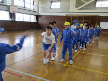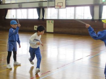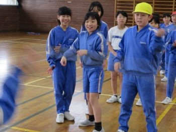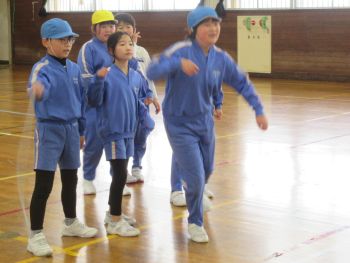 体育館では、4年生が長縄跳びの練習をしていました。互いに励ましあいながら、上達するよう繰り返し練習をしていました。