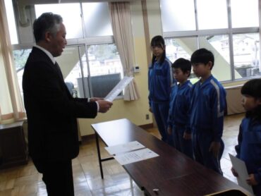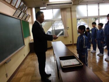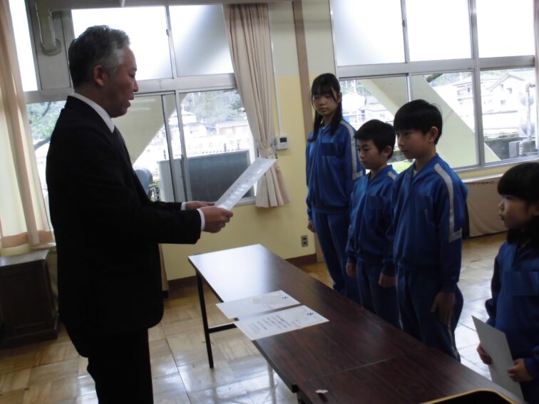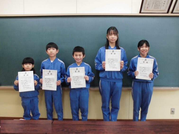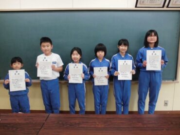 2026.1.16 全校生 授賞式 1月16日(金) 長休みの時間に受賞伝達を行いました。 令和7年度「ごはん・お米とわたし」作文・図画コンクールで努力賞を受賞した児童と、第12回クリエイティブたかおかに作品を出品した児童へ校長先生から賞状が渡されました。おめでとうございます。