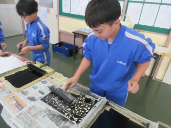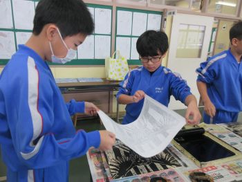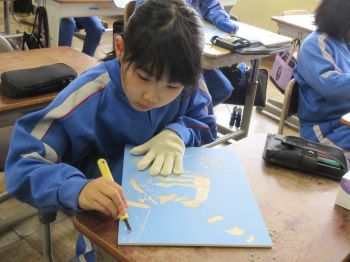 2026.1.20 3年生 4年生 今日の万葉っ子 1/20 1月20日(火) 3年生が長縄跳びの練習を始めました。久しぶりの挑戦に、ちょっぴり不安そうな表情を見せる子もいましたが、「ひっかかっても大丈夫だよ」という優しい声に背中を押され、みんな一生懸命に縄に向かっていきました。 4年生は、版画の製作に取り組みました。彫刻刀の種類によって線の表情が変わることを感じ取りながら、丁寧に彫り進めたり、友達と協力して版を摺ったりしました。力を合わせながら、少しずつ作品が形になっていきました。