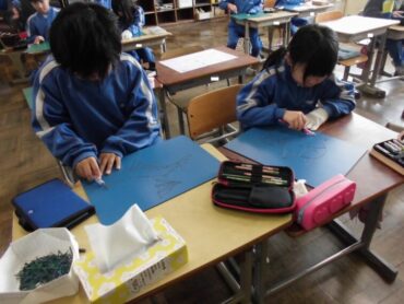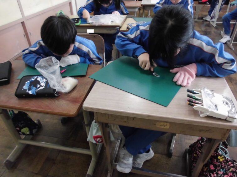 2026.1.29 3年生 4年生 今日の万葉っ子 1/27 1月27日(火) 1月も終わりになりました。 4年生は習字で「大地」と書きました。 2回目とあって半紙いっぱいに「大地」と書いていました。 3年生は図工の版画の時間です。 彫刻刀を使い、ゴム版に動物を彫りました。 ケガ防止のため、軍手をはめて活動しています。 どんな作品ができるのか楽しみです。
