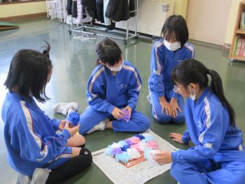 4年生は、卒業と入学の季節に向けて掲示物を作成しました。国語科で学習した「風船でうちゅうへ」をヒントに、一人一人が将来の夢や頑張りたいことを風船にのせて宇宙へ飛ばす様子を描いた共同作品です。子供たちの思いがどんな形で表現されているのか、完成がとても楽しみです。