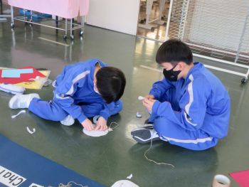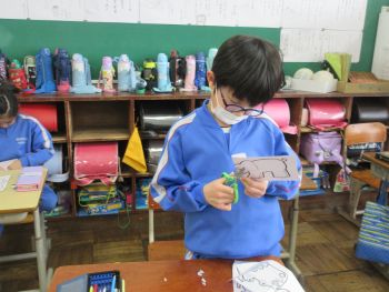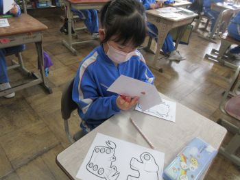 2年生は、明日の万葉タイムに向けて準備を進めていました。動物の絵が描かれたカードに、ハサミで丸い穴を開ける作業に集中して取り組んでいました。どんな活動になるのか楽しみですね。