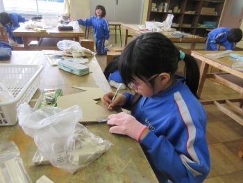3年生が、図画工作科の時間にのこぎりを使って木を様々な形に切る活動を行いました。子供たちはのこぎりを使うことにすっかりと慣れ、手際よく作業を進めていました。切り終えた子は、空いた時間に図工室をきれいに掃除していました。