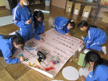 今週末に卒業を祝う会を控え、5年生が急ピッチで準備を行っていました。飾りをつくったり、プログラムを書いたりとそれぞれが役割を分担しながら和気あいあいと楽しそうに作業を進めていました。