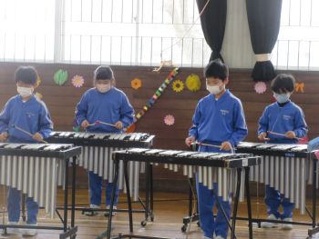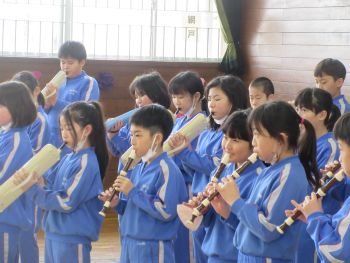 4年生の演奏と在校生の拍手で6年生を見送りました。