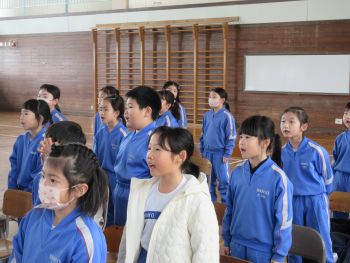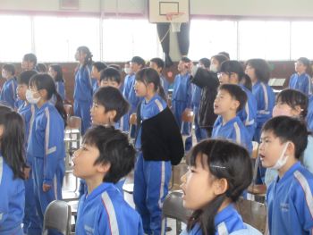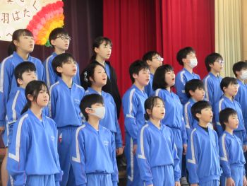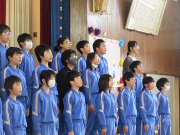 実行委員の呼びかけと、在校生全員からの歌のプレゼント。体育館いっぱいに響く元気な歌声が、6年生へ感謝の気持ちを届けていました。