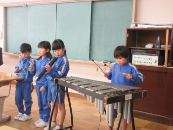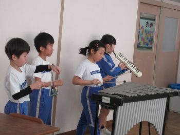 2026.3.18 1年生 3年生 今日の万葉っ子 3/18 3月18日(水) 3年生は、外国語活動の時間に1年間のまとめを行いました。これまで習ってきた内容がクイズになって登場し、問題が映し出されるたびに子どもたちの目はモニターにくぎ付け。歓声が上がる盛り上がりで、楽しみながら1年間を振り返ることができました。 1年生は、音楽の時間に「きらきらぼし」の合奏に挑戦しました。鍵盤ハーモニカや鉄琴で一生懸命練習したあとは、みんなで演奏。リズムに合わせて体を揺らしながら、息の合ったすてきなハーモニーを響かせていました。