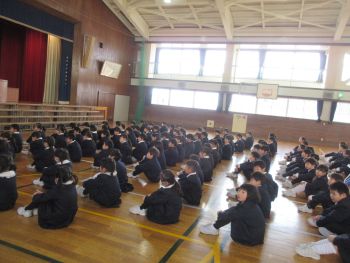 最後に、生徒指導の先生から春休みの過ごし方についてのお話がありました。交通ルールを守って安全に行動することや、不審者から身を守るために気をつけること等、生活面で大切にしてほしいことを改めて確認しました。